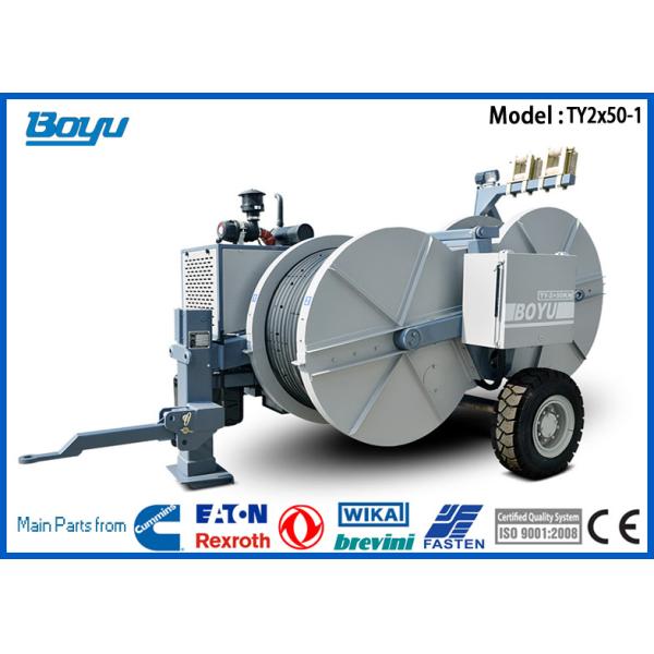 Pulling Type 2 x 50KN Hydraulic Cable Tensioner for Twin-bundle conductor Cummins Engine German Rexroth Pump Images |